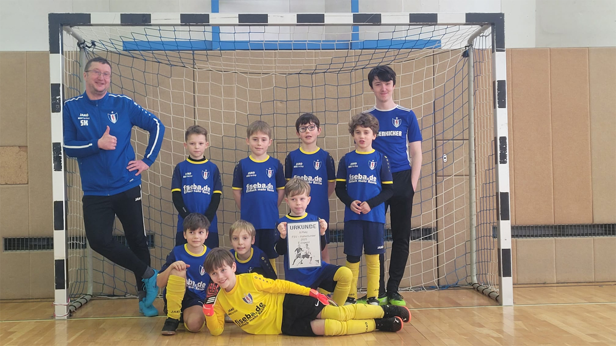 Eine sehr ordentliche Bronzemedaille holten unsere E2-Junioren beim Hallenturnier des SV Rot-Weiß Weißenfels. In der Gruppenphase bedeuteten drei Siege aus drei Spielen gegen den SV Rot-Weiß Weißenfels II, Concordia Schenkenberg und den SSC Weißenfels den Einzug ins Halbfinale. Dort war gegen die 1.Mannschaft der Gastgeber dann leider Schluss. Am Ende konnte das Spiel um Platz 3 gewonnen und die Bronzemedaille mit auf den Felsen gebracht werden.