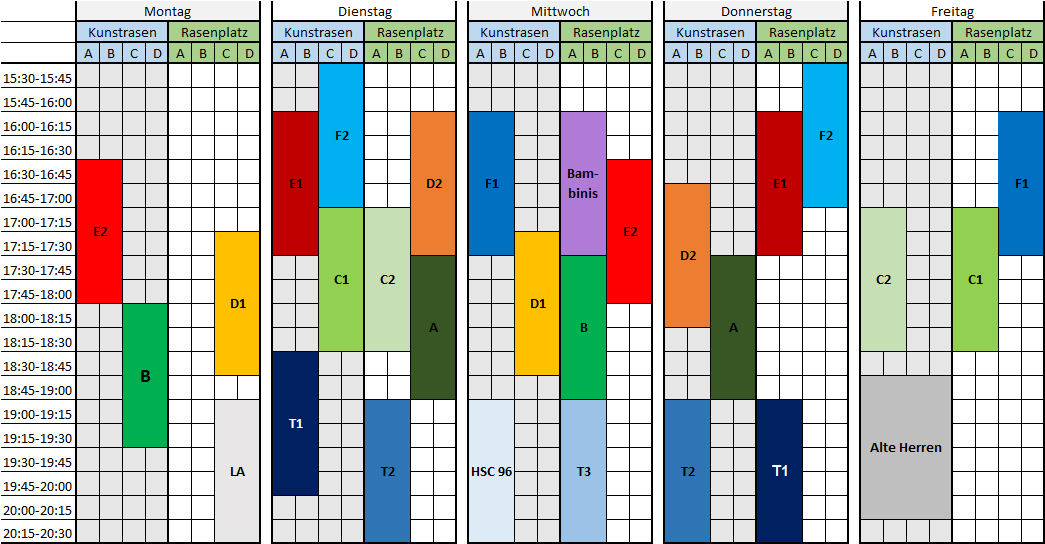 - Pro Großfeldhälfte ist eine Trainingsruppe a 25 Personen zugelassen.