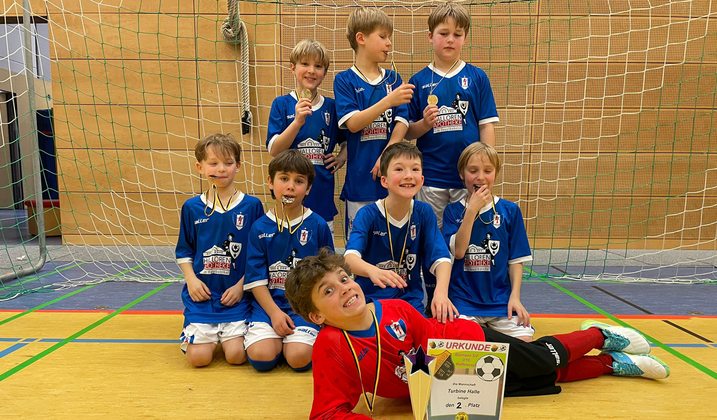 Während draußen die weiße Pracht zum Wintersport einlud, nahmen unsere Nachwuchskicker reihenweise an Hallenturnieren teil - und das mit ordentlichem Erfolg. Durch ein 2:0 im Finale gegen Chemie Böhlen gewann die E1-Jugend den Fortuna-Cup in Neukirchen. Gleich zwei Turniersiege fuhr die F1-Jugend ein. Neben dem Gewinn des Hallenturniers des NFC Landsberg konnte am Sonntag auch gleich noch die Goldmedaille beim Turnier des SV Turbine Dresden geholt werden. Nachdem unsere D1-Jugend in den letzten Wochen einige Male knapp gescheitert war, gelang in Landsberg endlich der erste Turniersieg. Im Modus "Jeder-gegen-Jeden" gewann Turbine im 6er Feld alle fünf Spiele.
