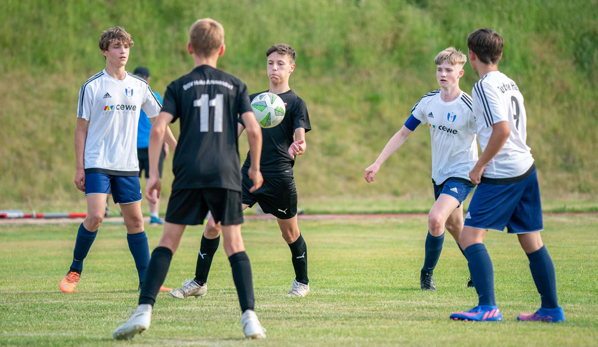 Wer A sagt, muss auch B sagen ... und C sowieso! Nach den A-, und B-Junioren zogen heute Abend auch unsere C-Junioren in das Finale um den halleschen Stadtpokal ein. Herzlichen Glückwunsch an das Team von Coach Christian Mangold. Es war das erwartet heiß umkämpfte Spiel gegen die SG Motor Halle, die nach einem Eigentor der Felsenkicker bereits nach 12 Minuten in Führung ging. Doch nur zwei Minuten später glich Tim N. zum 1:1 aus.