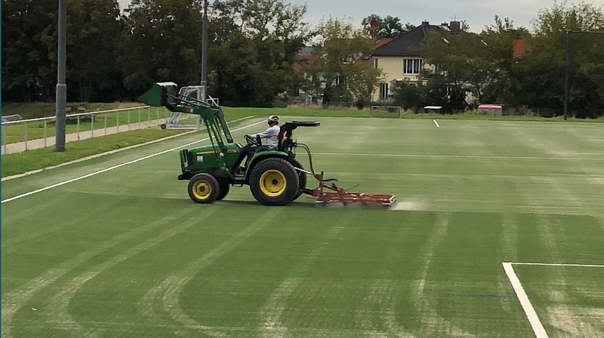 Nach etwas drei Jahren wurde es Zeit, neuen Sand auf den Kunstrasenplatz zu bringen, um wieder ausreichend Gewicht auf die Kunstrasenbahnen zu legen. Die Firma artifex Barthel hat trotz der ungünstigen Witterung am Montag alle Arbeiten komplett durchgeführt und 50 Tonnen Sand aufgebracht. Nicht nur eine Menge Gewicht, sondern auch ein hübsches Sümmchen Geld ... Der Platz ist für das Training wieder freigegeben.