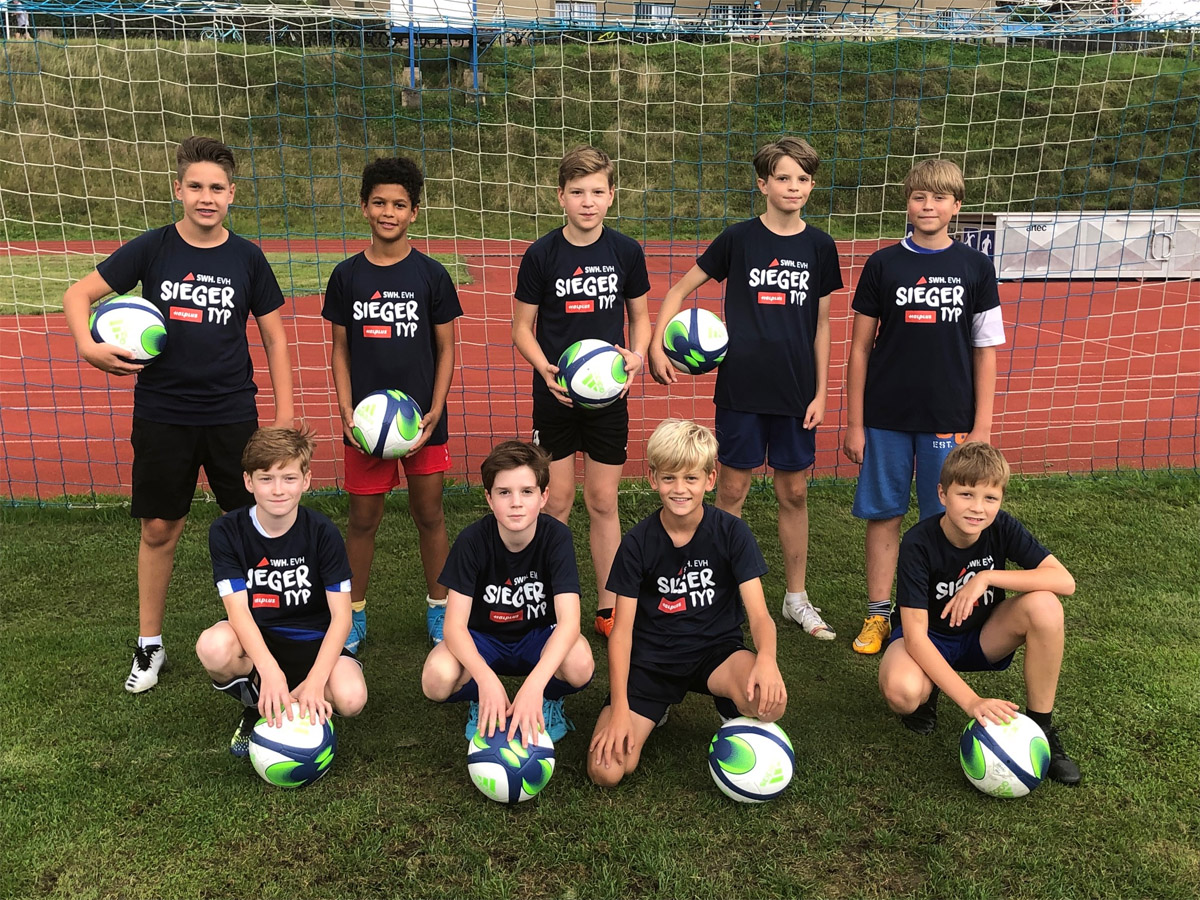 Dank des Projektes 'Siegertyp' des halleschen Stadtsportbundes können sich unsere D1-Junioren über neue Trainingsshirts freuen. Die Shirts wurden durch die Stadtwerke Halle dem SSB kostenfrei zur Verfügung gestellt. Zum Training präsentierte sich der 'Rumpfkader' unserer D-Jugend in der neuen Bekleidung. Wir bedanken uns beim Stadtsportbund, wünschen viel Spaß mit den Shirts und hoffen, dass bald wieder mehr Spieler der D1 am Training teilnehmen können.