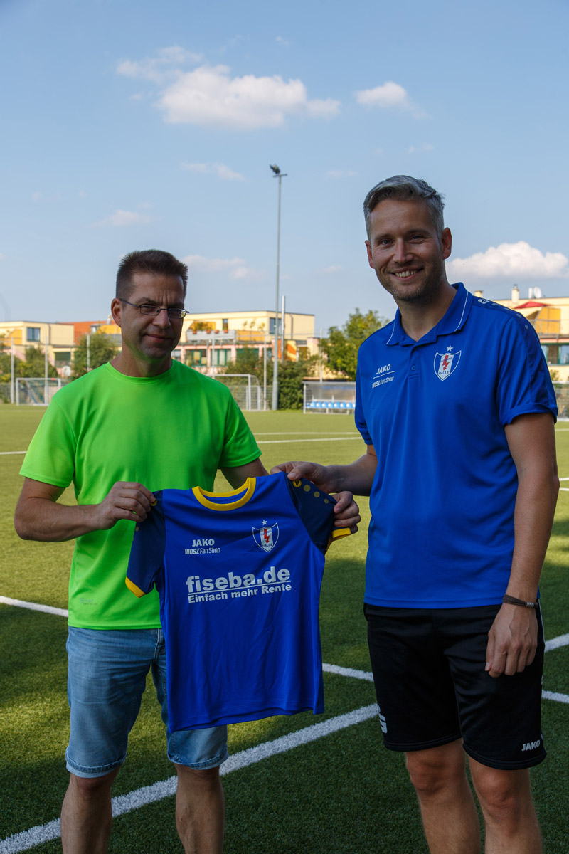 Seit kurzem präsentieren sich unsere E2-Junioren in neuem Outfit. Die Firma fiseba.de sponsert einen blauen Trikotsatz des Ausrüsters JAKO. Tino Baumgart übergab die Trikots anlässlich des Trainings an Teamcoach Matthias Rücker. Anschließend stellten sich Mannschaft und die Trainer Matthias Rücker und Jannik Peinemann selbstverständlich dem Teamfotografen. Wir bedanken und ganz herzlich bei Tino Baumgart und seiner Firma fiseba.de für die Unterstützung.