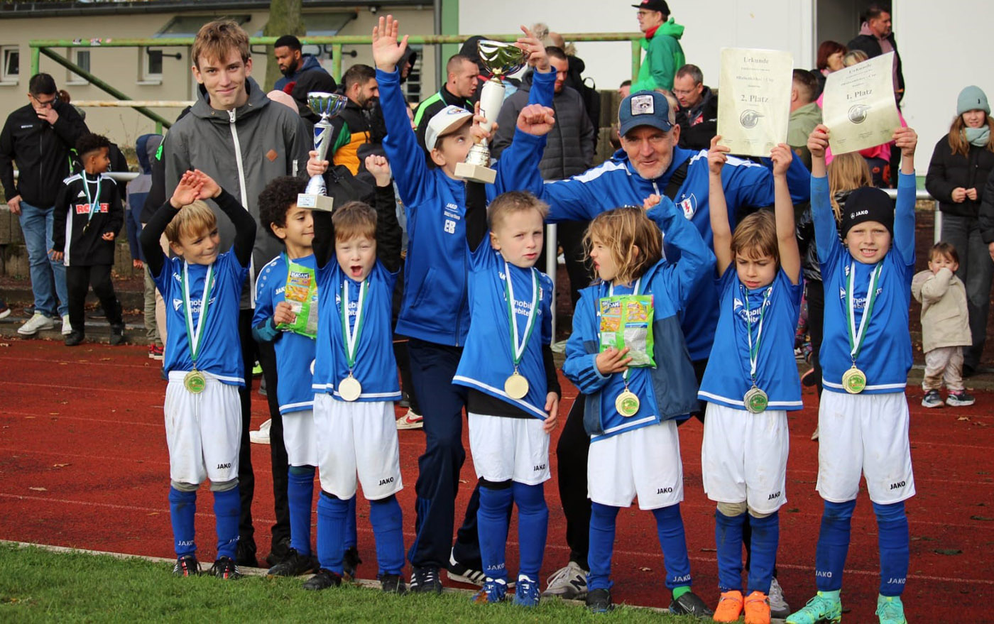 Am 28. Oktober nahmen unsere Bambinis an ihrem ersten Turnier teil und landeten prompt auf dem ersten Platz. Im Merseburger Stadtstadion trafen sich 16 Mannschaften anlässlich des Rabenkicker-Cup beim SV Merseburg 99. Gespielt wurde nach Funinho-Regeln. Turbine stellte zwei Teams und qualifizierte sich nach der Vorrunde für die Championsrunde sowie die Silberrunde. Am Ende holten unsere Bambinis sich den 2. Platz in der Silberrunde und den Turniersieg.