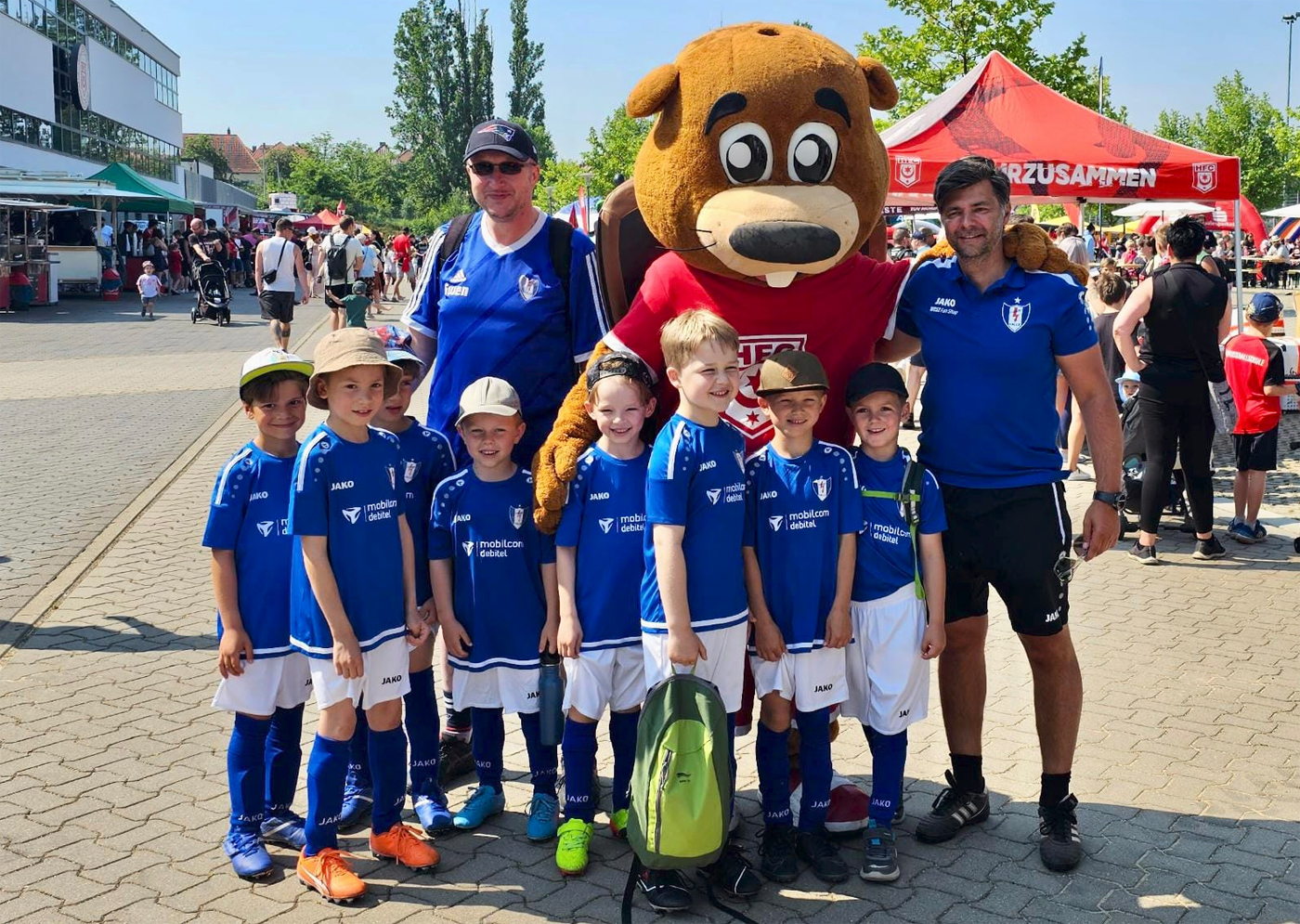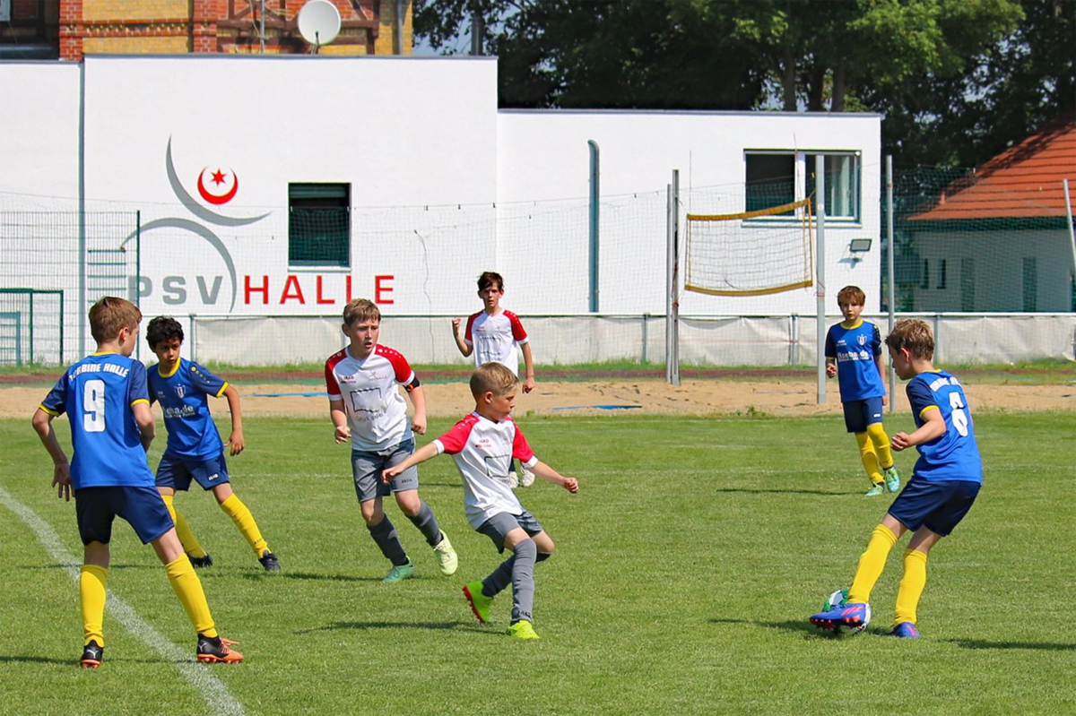 Anlässlich des Kinderfestes am Leuna-Chemie-Stadion lud der Hallesche FC zu einem Bambiniturnier ein, das auf dem Rasenplatz ausgetragen wurde, auf dem sonst nur die die Profis trainieren dürfen. Bei sommerlichen Temperaturen traten acht Teams im Funino-Modus gegeneinander an. Unsere Jüngsten präsentierten sich in Hochform und zeigten schöne Kombinationen und sehenswerte Treffer. Am Ende stand die Teilnahme und nicht die Ergebnisse im Vordergrund.