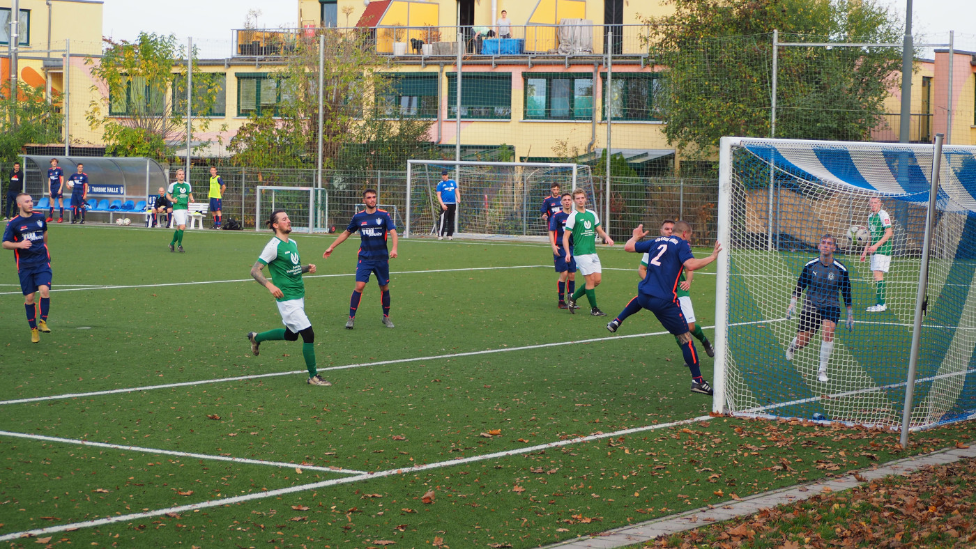 Eine außerordentlich zuschauerfreundliche Partie legte unsere 2.Mannschaft gegen die SG HTB Halle auf den Platz. Beim nie gefährdeten 5:0-Sieg fielen alle Treffer vor der Südtribüne des Kunstrasenplatzes, sodass sich die T2-Torschützen den Beifall fast nautnah abholen konnten. T2 legte los wie die Feuerwehr, presste hoch und schoss aus allen Lagen auf das Gehäuse. Innerhalb von nur acht Minuten traf Turbine dreimal und setzte sich auf die Siegerspur.