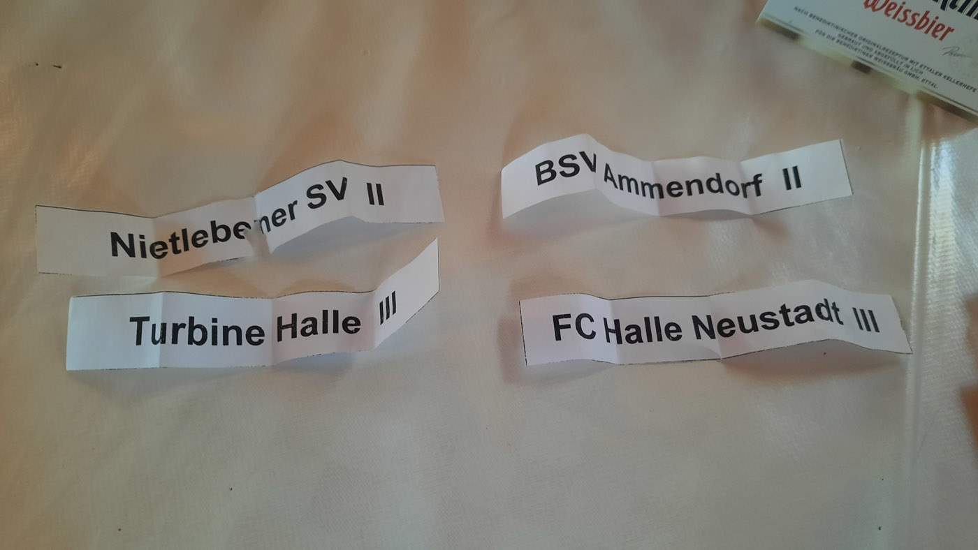 Immerhin nicht die 2.Mannschaft des BSV Ammendorf, sollte man nach der gestrigen Auslosung des Halbfinals im Reservepokal meinen. Im Rahmen der 'Börse' des SFV Halle zog die Losfee unserer 3.Mannschaft den FC Halle-Neustadt III zu. Der Stadtklassevertreter sorgte im bisherigen Pokalverlauf für Furore und konnte bereits 3 (!) höherklassige Stadtligisten ausschalten. Für T3 ist dieses Los also alles andere als ein Selbstläufer. Ausgetragen wird die Partie erst im Jahr 2023.